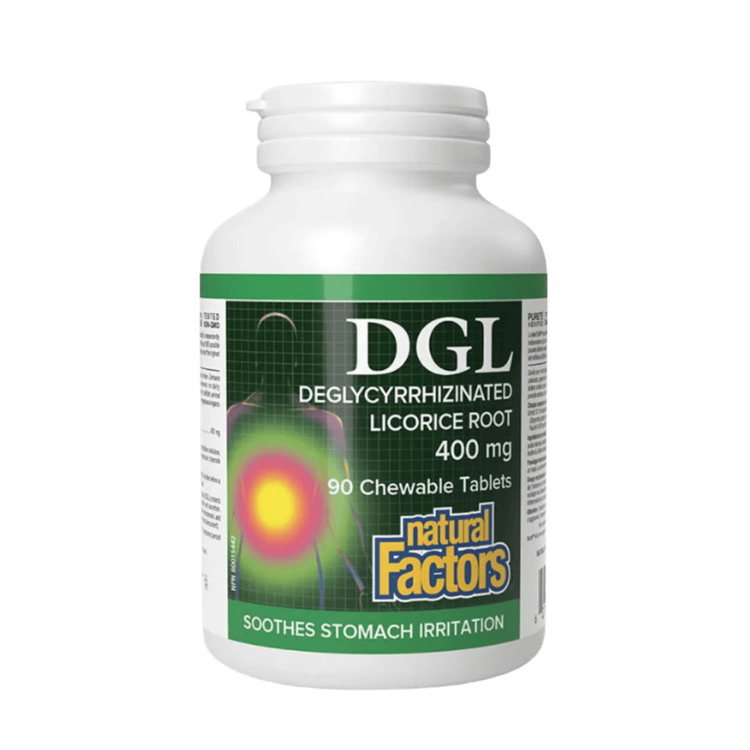 NATURAL FACTORS DGL je dodatak ishrani sa deglicirizovanom sladićevom (slatki koren) formulom, namenjen podršci zdravlju digestivnog trakta i zaštiti sluzokože želuca i dvanaestopalačnog creva.