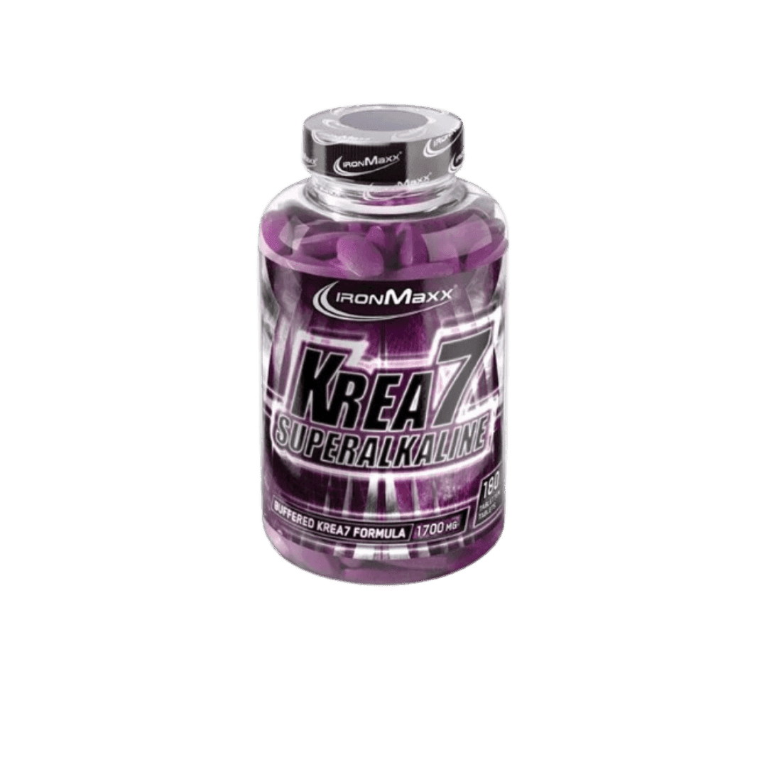 Krea7 Superalkaline tablete iz IronMaxxa sadrže optimalnu kombinaciju 6 najboljih vrsta kreatina na svetu, a osim toga sadrže i vrlo efikasan Ph regulator. On omogućava da kreatin dođe u mišićno tkivo efikasno i brzo, mišići ga odmah mogu potrošiti i na taj način proizvode više energije.Nova kreatinska tehnologija za još više snage i za brži mišićni rast!
