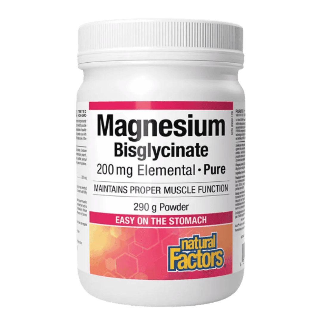 Natural Factors Magnesium Bisglycinate Pure obezbeđuje 200 mg ovog esencijalnog minerala u obliku koji se lako apsorbuje i blago deluje na želudac. Ovaj dodatak je pogodan za vegane, ne sadrži GMO sastojke i ne zahteva prisustvo želudačne kiseline za efikasnu apsorpciju.