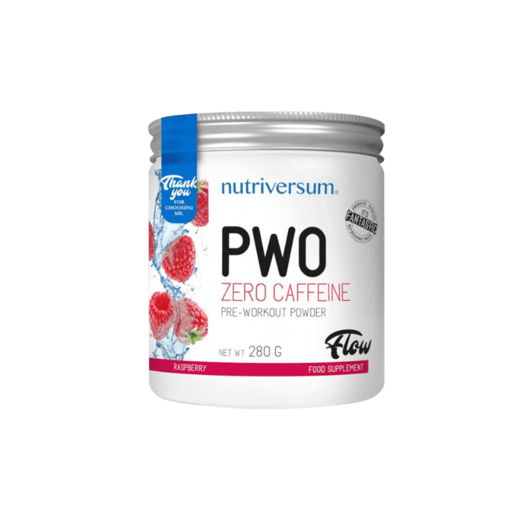 Nutriversum PWO ZERO CAFFEINE je kompleksna formula za pre treninga, koja za razliku od većine preworkout proizvoda ne sadrži kofein. Pošto je bez stimulansa, lako ga možete koristiti pre treninga u kasnim satima, ne morate da brinete da nećete moći da zaspite noću; možete ga koristiti ako imate veću težinu ili imate visok krvni pritisak iz bilo kog drugog razloga, jer proizvod nema uticaj na rad srca ili krvni pritisak; ili ga možete koristiti ako jednostavno želite da izbegnete konzumaciju kofeina, ali ne želite da odustanete od motivacije koju formula pre treninga može da ponudi.